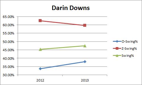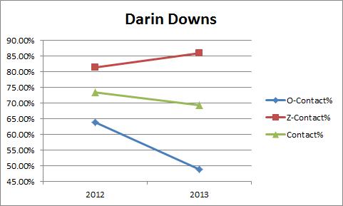 Downs is getting hitters to chase more outside the zone and take more inside the zone, which goes nicely with the fact that hitters are making less contact outside the zone and more inside the zone this year: