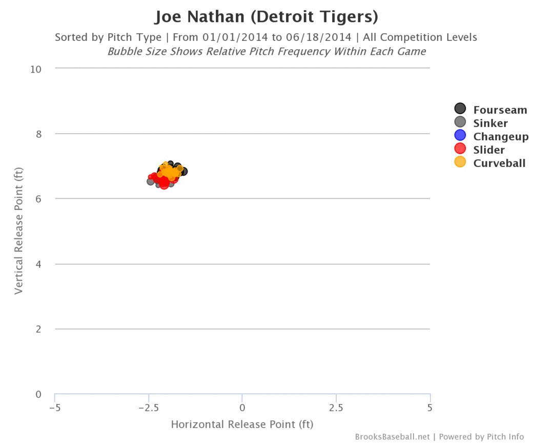 Uh oh! That’s not very good. If you’ll recall, after that great start on May 17, Porcello got a couple extra days of rest due to an injured left side. The Tigers said they wanted to be very careful and I don’t know if the two things are certainly related, but take a look at his release point adjustment since May 17 when the injury was revealed: