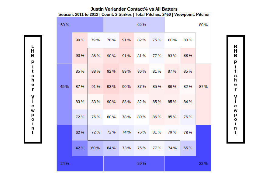 It’s almost like a curse. Verlander’s stuff is good enough that he doesn’t realize he needs to change. Take a look at his contact percentage with two strikes in 2011-12 and in 2014.
