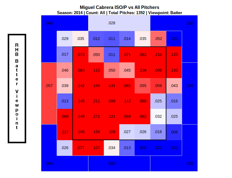 It’s always smart to bet on regression to the mean and that means Cabrera will be fine. Maybe he’s still healing, but those reports are kind of mixed. I don’t think there’s an obvious answer to this question. He’s not enough different to be worried but things are different enough to take notice. Let’s peer into his ISO, and specifically notice the way inside pitch.