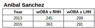 Anibal Sanchez has not had a good season. It hasn’t been horrible or anything, but he’s been a below average pitcher for the first time since 2008/2009. He has a 4.82 ERA and 4.47 FIP (120 ERA-, 113 FIP-). He’s clearly been better lately than he was earlier on, but it’s not like he’s been the dominant Sanchez we came to know and love. It’s easy to recognize the direct cause of his poor performance: He’s allowing too many home runs. He’s allowed 1.51 HR/9 or 25 total. Both are career highs. Heck, he only allowed 33 HR from 2012-2014. It’s a problem.