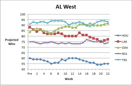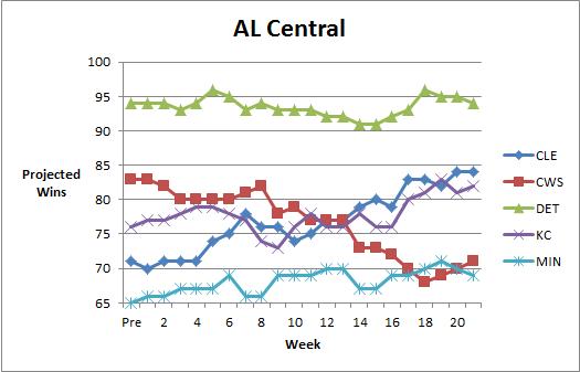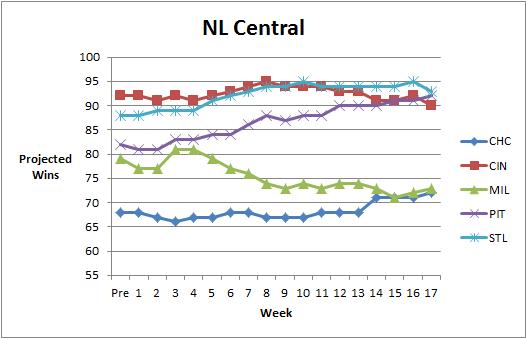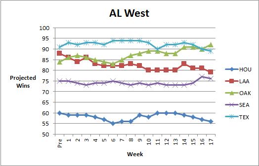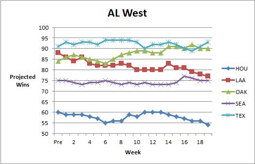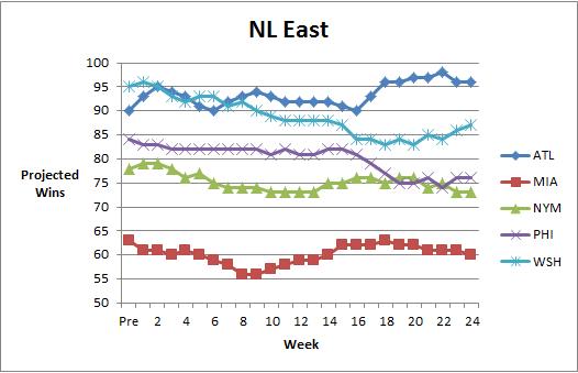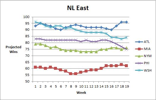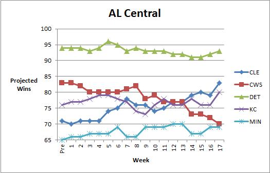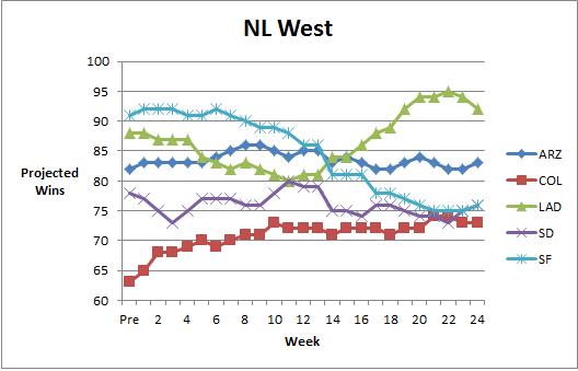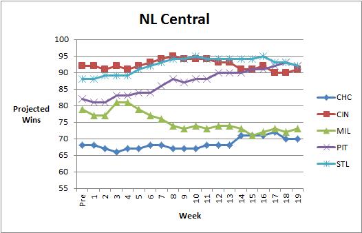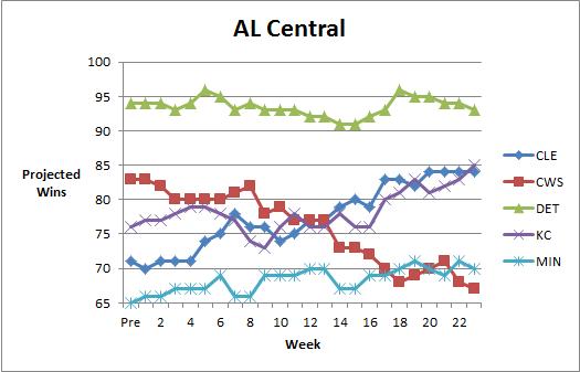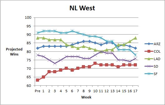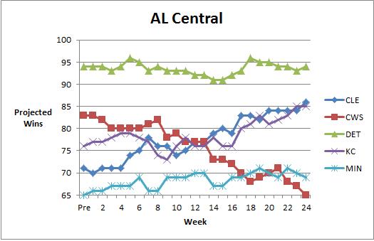 This Dynamic Standings Projection is updated through the September 4th games. Note that DSP posts have been moved to Thursday accommodate something that won’t interest you.