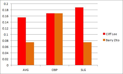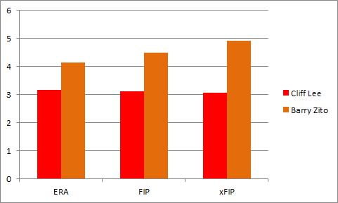 Let’s start with some simple numbers from their 2012 campaigns to get you up to speed. Lee threw more than 25 more inning than Zito and performed better across the board: