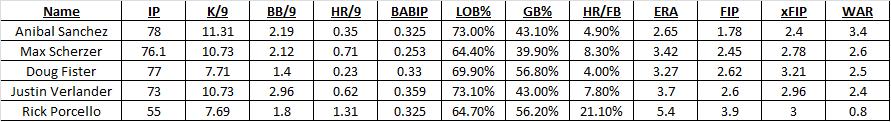 | Anibal Sanchez | 111 | 3.7 | 63 | 61 |